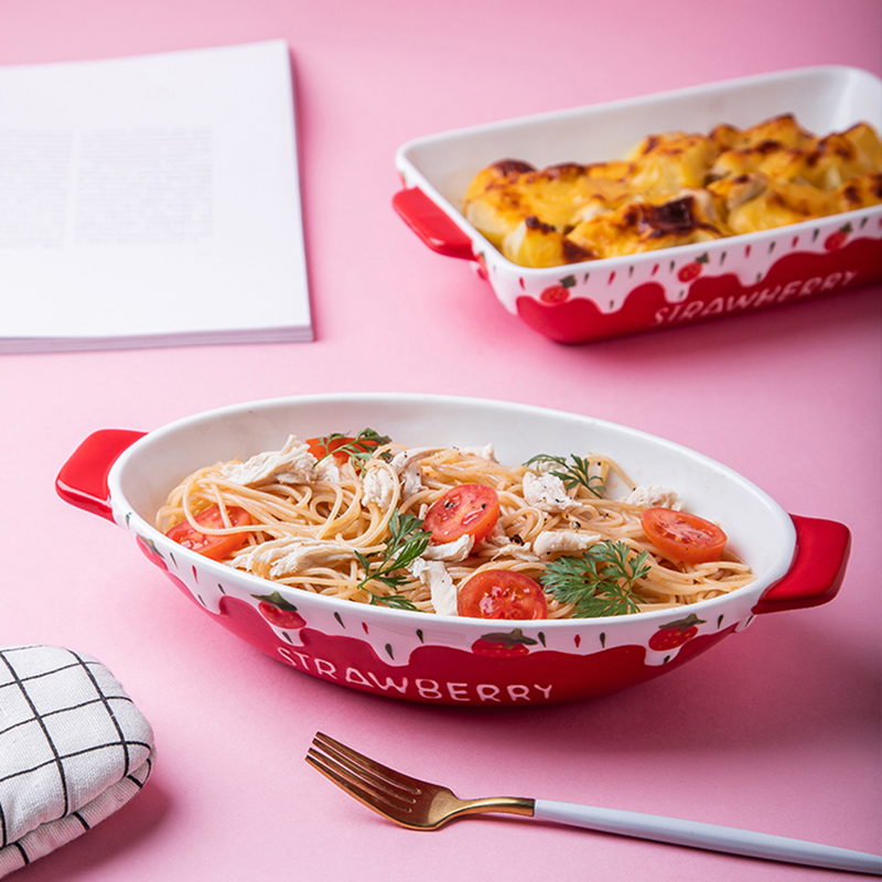 Strawberry Porcelain Baking Dish – Oval & Rectangular Variants