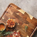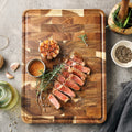 This premium cutting board is crafted from solid Acacia Mangium hardwood, showcasing a durable end-grain construction that ensures superior knife-friendliness, longevity, and natural antibacterial performance. Its polished surface, rounded edges, and substantial 2.6 cm thickness provide exceptional stability for daily food prep, while the rich acacia pattern brings a warm, elevated touch to any modern kitchen. Designed for both functionality and aesthetics, it delivers a refined chopping experience.