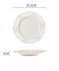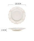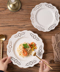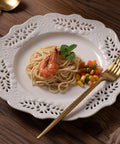 Add timeless elegance to your table with the Vintage Embossed Porcelain Plate, featuring exquisite lace-style edges and a glossy white ceramic finish.
