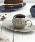 This 120ml espresso cup features a refined Nordic ribbed ceramic design paired with an elegant elongated saucer, offering a stylish and compact way to enjoy rich espresso or small coffee servings. Crafted from high-quality glazed ceramic, it delivers durability, smooth texture, and excellent heat retention while maintaining a modern, minimalist aesthetic. Perfect for espresso lovers, dessert presentations, and refined table settings.