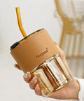 A refined 450ml drinking cup crafted from durable soda lime glass. Featuring a sleek protective sleeve and reusable straw, it’s the perfect blend of elegant simplicity and daily functionality.