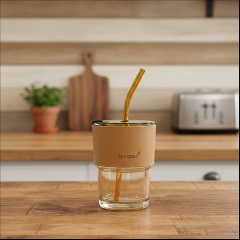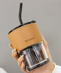 This modern 450ml drinking cup is crafted from durable soda lime glass, featuring a sleek protective sleeve and matching reusable drinking straw for everyday convenience. Its clear glass body provides excellent clarity, while the minimal design ensures a comfortable grip and stylish on-the-go use. Perfect for iced coffee, juice, smoothies, and daily hydration, it brings together functionality and elegant simplicity in one refined piece.