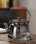 Heat-Resistant Glass Teapot – Wooden Handle in Transparent & Smoky Gray