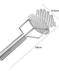 Durable 24 cm stainless steel masher featuring a dual-mashing plate for smooth results and an ergonomic non-slip handle for effortless meal prep.
