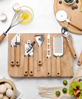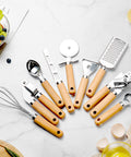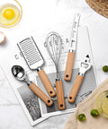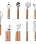 Elevate your culinary workspace with this professional 9-piece kitchen tool set, where timeless countertop appeal meets everyday functionality. Each utensil is meticulously crafted with high-grade stainless steel heads and smooth, solid wood handles to create a warm, modern aesthetic. Designed for durability and precision, this comprehensive set makes every prep task—from grating to whisking—a more enjoyable and efficient experience.