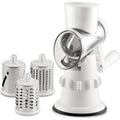 Featuring sharp stainless steel blades and three interchangeable drum heads, it’s perfect for vegetables, fruits, cheese, or chocolate.