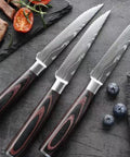- Damascus-style Serrated Steak Knives (Quantity based on selected set), Free Shipping included.