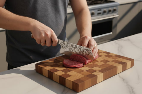 Hand wash and dry immediately to maintain handle and blade quality.