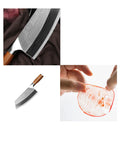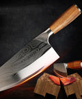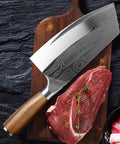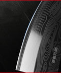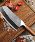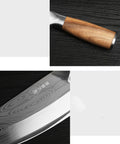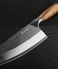 Hand wash only to maintain the laser-etched pattern and wood handle. Wipe dry immediately after washing and store in a dry area. Avoid chopping large bones or frozen foods to preserve the fine slicing edge.