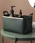 Stylish eco-friendly PU leather storage box featuring a space-saving foldable design, portable side handles, and versatile high-capacity organization.