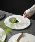 Luxury Ceramic Western Plate – Modern Ripple Texture Fine Dining Plate
