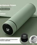 Intelligent 16.9 fl oz (500ml) stainless steel vacuum flask featuring an integrated LED temperature display lid and 304-grade rust-resistant interior.
