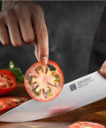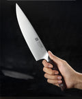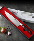 Western-style kitchen knife featuring a German steel blade, a 15° precision edge, and a natural red sandalwood handle.
