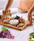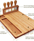 100% Sustainable Anti-Bacterial Bamboo ConstructionIntegrated Upright Storage for 4 Specialized Cheese KnivesDedicated Grooves for Crackers, Toast, and Condiments