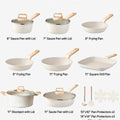 This thoughtfully curated 19-piece cookware collection is designed to support a wide range of everyday cooking tasks with ease, efficiency, and modern style. The set includes multiple sauce pans, frying pans, a square grill pan, a sauté pan, a stockpot, silicone utensils, and protective pads—offering a complete, space-saving solution for both daily meals and elevated culinary projects. Crafted with a durable Maifan stone non-stick coating, each piece ensures smooth food release, effortless cleaning, and reliable performance up to 380°C. The cookware is free from lead, cadmium, and PFOA, allowing healthier cooking with less oil.