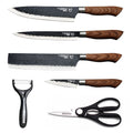 This 6-piece premium kitchen knife set is designed for precise, confident and versatile everyday cooking. Each blade features a forged high-carbon stainless steel construction with a textured non-stick finish, offering excellent sharpness, reduced drag and long-lasting durability. The ergonomically shaped handles with a natural wood-grain look provide a comfortable, stable grip for extended prep sessions. The set includes essential knives for Western-style cooking—chef’s knife, carving knife, cleaver, paring knife—plus kitchen scissors and a ceramic peeler, making it a complete toolkit for both home cooks and elevated culinary tasks.
