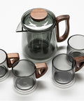 This refined tea collection features a modern smoke-tinted heat-resistant glass paired with an elegant natural wooden handle, offering a uniquely warm and contemporary aesthetic for everyday brewing. The teapot and matching cups are crafted from premium borosilicate glass, ensuring excellent durability, clarity, and temperature stability. Designed for effortless comfort and elevated tea moments, each piece blends minimalist design with practical function, creating a beautifully balanced tea experience.