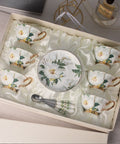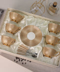 Elevate your tea service with this refined tea cup collection, crafted from professional Bone China–grade porcelain containing a high-grade 45% bone powder. This premium composition offers exceptional whiteness, delicate translucency, and superior durability compared to standard ceramic. Featuring elegant white floral artwork and a luxurious gold-finished handle, this set is meticulously designed to transform everyday tea moments and special gatherings into a beautifully elevated experience.