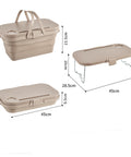 Crafted from durable and lightweight materials, it features a large capacity storage box for snacks, beverages, or camping essentials. The lid doubles as a portable mini table with foldable legs, perfect for holding drinks, fruits, or even watching videos outdoors. Its collapsible design ensures space-saving storage when not in use, making it easy to carry and store.