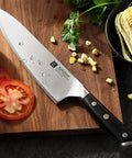 This premium chef knife is crafted for precision, balance, and everyday performance, featuring a razor-sharp high-carbon stainless steel blade that delivers clean, effortless cutting. Its ergonomic handle ensures a secure and comfortable grip, while the included protective sheath makes storage safe and convenient. Designed for slicing, chopping, and all-purpose kitchen tasks, it offers exceptional durability and a refined professional feel for modern cooking.