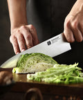 The knife is engineered with a balanced weight distribution between the blade and handle, allowing for precise control and reducing fatigue during high-volume meal preparation.