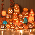Available in two styles โ small round pumpkin and long pumpkin, each featuring a unique carved face design.