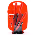 Each set includes sharp stainless steel blades, a sturdy cutting board, and modern design available in multiple colors.