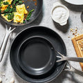 Smoke-free, non-stick, effortless cooking. The aluminum alloy frying pan delivers even heat distribution with a lightweight and durable body.