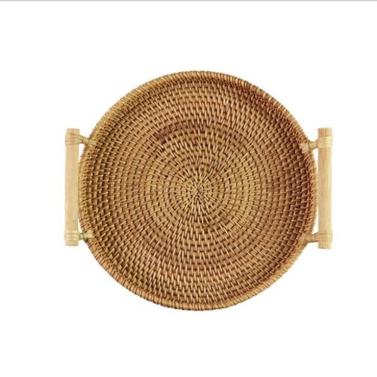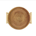 Handmade Round Rattan Tray – Natural Woven Serving Basket with Handles