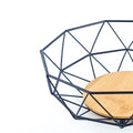 Nordic Geometric Metal Fruit Basket – Black Wire & Bamboo Base Decorative Bowl