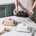 Vintage Ceramic Butter Dish with Lid – Elegant Rectangular Butter Keeper