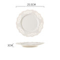 Add timeless elegance to your table with the Vintage Embossed Porcelain Plate, featuring exquisite lace-style edges and a glossy white ceramic finish.