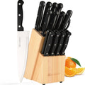 This 19-Piece German Steel Knife Set combines elegant design with powerful performance. Each knife is crafted from premium German stainless steel, ensuring razor-sharp precision, excellent edge retention, and corrosion resistance. The ergonomic triple-riveted handles provide comfort, balance, and control for both home cooks and professionals. Featuring a built-in sharpener, your knives stay sharp effortlessly — while the solid pine wood block offers organized, beautiful storage. From chopping and slicing to dicing and carving, this dishwasher-safe knife set is your complete kitchen solution.