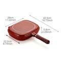 Perfect cooking made simple. This modern double-sided non-stick pan distributes heat evenly, keeping food crispy outside and juicy inside. Made of durable aluminum with a premium ceramic non-stick coating, it ensures easy release and effortless cleaning. The ergonomic handle offers a secure grip, while the flip design locks in flavor and prevents smoke. Ideal for French toast, steak, fish, pancakes, and more. Available in 28 cm and 32 cm sizes — Free Shipping included!