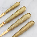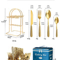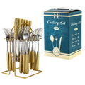 Designed for elegant dining, this 24-piece stainless steel cutlery set features beautifully textured handles in titanium gold, natural gold, or natural silver. Its mirror-polished finish adds refined charm to any table setting, while the included display stand keeps every piece organized and ready to use. With its luxurious retro-inspired aesthetic, this set makes a thoughtful and stylish gift for holidays, housewarmings, weddings, and festive occasions, even without a dedicated gift box.