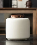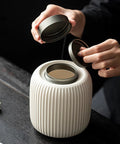 Wudy Beige Ceramic Tea Canister | Retro Zen Storage Jar