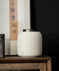 Elegant Ribbed Ceramic FormPerfect Balance of Zen and Retro LuxuryHandcrafted Colored Glaze Surface