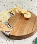 Equipped with three removable ceramic bowls, this set allows you to serve nuts, dips, or olives alongside your main charcuterie selection without mixing flavors. The high-quality ceramic is moisture-resistant and easy to clean, providing a sophisticated contrast to the natural warmth of the bamboo.
