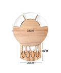 This round bamboo charcuterie board blends natural design with smart functionality. It includes three removable ceramic dishes for snacks, fruits, and dips, along with a hidden drawer that stores four stainless steel cheese knives. Perfect for wine nights, gatherings, and festive occasions, it offers a stylish way to serve and organize a variety of foods.