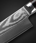 Minimalist Damascus slicing knife with a 2.5mm precision blade and eco-wood handle.