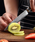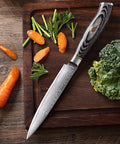 Versatile utility knife built for clean chopping, slicing, and dicing. The 67-layer  Damascus steel  blade is vacuum heat-treated to  60 ± 2 HRC  for long-lasting sharpness and corrosion resistance. A smooth  honeycomb handle  (aviation aluminum + resin with dual copper rings) provides a comfortable, stable grip.