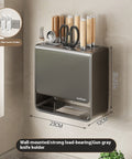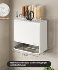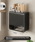 High-strength carbon steel storage rack featuring a ventilated base, dual installation options, and space for knives, utensils, and chopsticks.