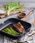The specialized ribbed interior is designed to elevate food away from excess fats while searing deeply into the surface, locking in moisture and delivering professional-quality grill marks.