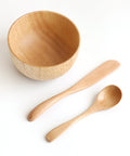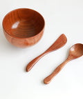 Set Components: 1 x Natural Wood Bowl, 1 x Spreader/Spatula, 1 x Rounded Spoon.