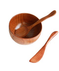 Versatile 3-piece handcrafted natural wood bowl and spoon set featuring a waterproof finish, perfect for culinary use or skincare rituals.