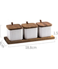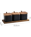 Modern 3-piece ceramic seasoning set featuring a sleek matte finish, durable high-temperature fired porcelain, and natural wood accents for stylish and organized kitchen storage.