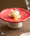 Add a whimsical touch to your table with this mushroom-shaped ceramic dessert stand. Featuring a red polka dot top and a smooth white pedestal base, it’s perfect for serving desserts, pastries, and tea-time treats.