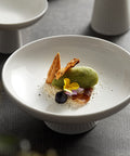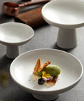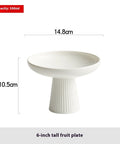 A modern ceramic pedestal plate designed for elegant serving. Perfect for fruits, desserts, or ice cream. The minimalist white finish with a ribbed base adds sophistication to any dining setup. Durable, easy to clean, and versatile for stylish home or restaurant presentation.
