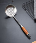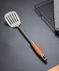 Designed for effortless meal prep, these high-quality tools feature a smooth stainless steel surface that ensures quick and easy cleaning after every use. The ergonomic rosewood handles stay cool and comfortable, providing a balanced and reliable grip for everything from sautéing to serving.